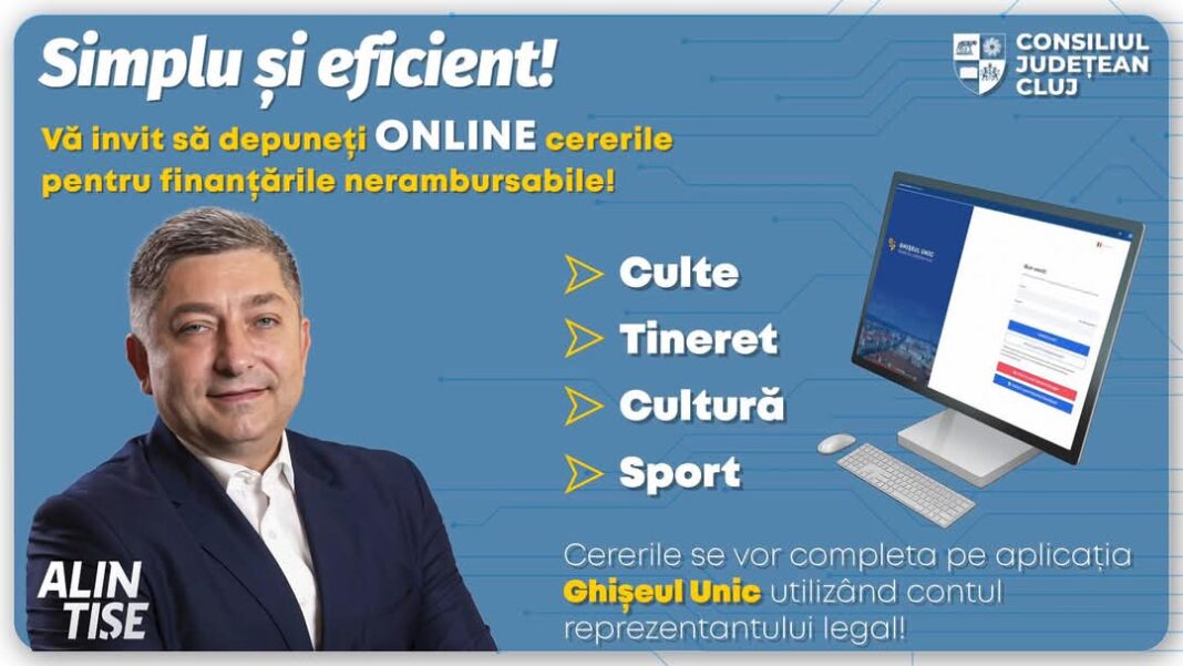🟢 În acest an, întregul proces de depunere a cererilor pentru finanțările nerambursabile se va desfășura exclusiv online, prin aplicația Consiliului Județean Cluj, Ghișeul Unic.