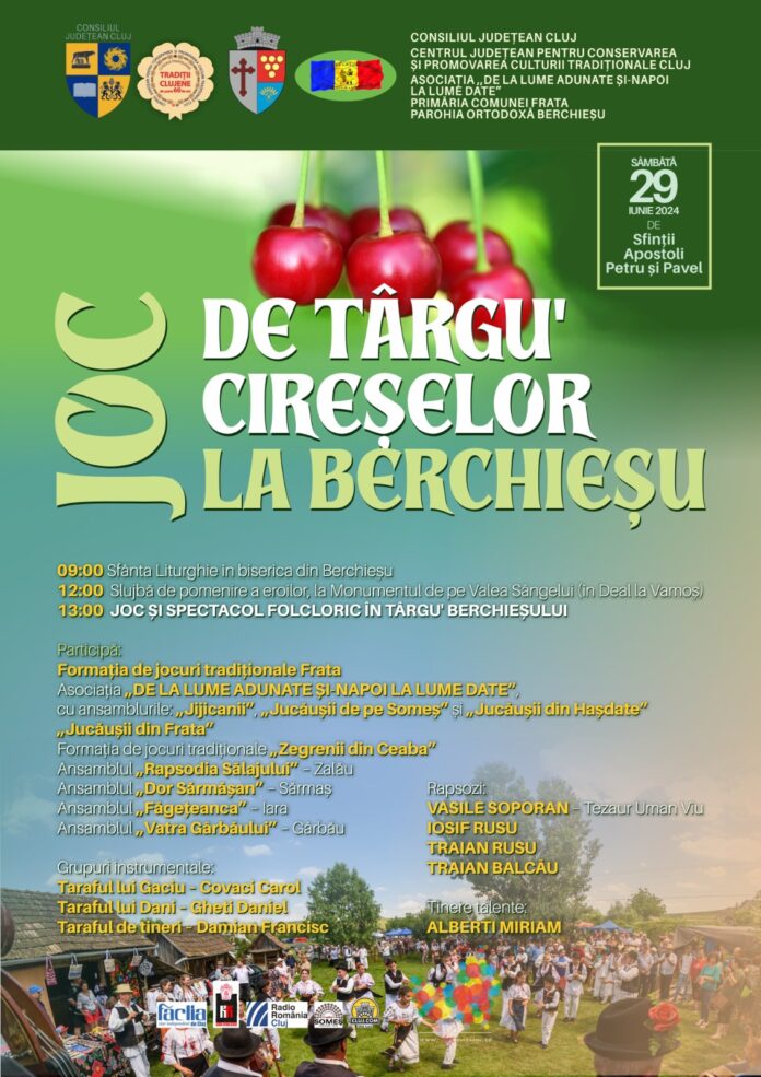 De sฤrbฤtoarea Sfinศilor Apostoli Petru ศi Pavel, sรขmbฤtฤ, 29 iunie 2024, cunoscutฤ รฎn tradiศia romรขneascฤ sub numele de โSรขnpetruโ sau โSรขnpetru de varฤโ, รฎn localitatea clujeanฤ Berchieศu se desfฤศoarฤ manifestarea tradiศionalฤ โJoc de tรขrguโ cireศelorโ.
