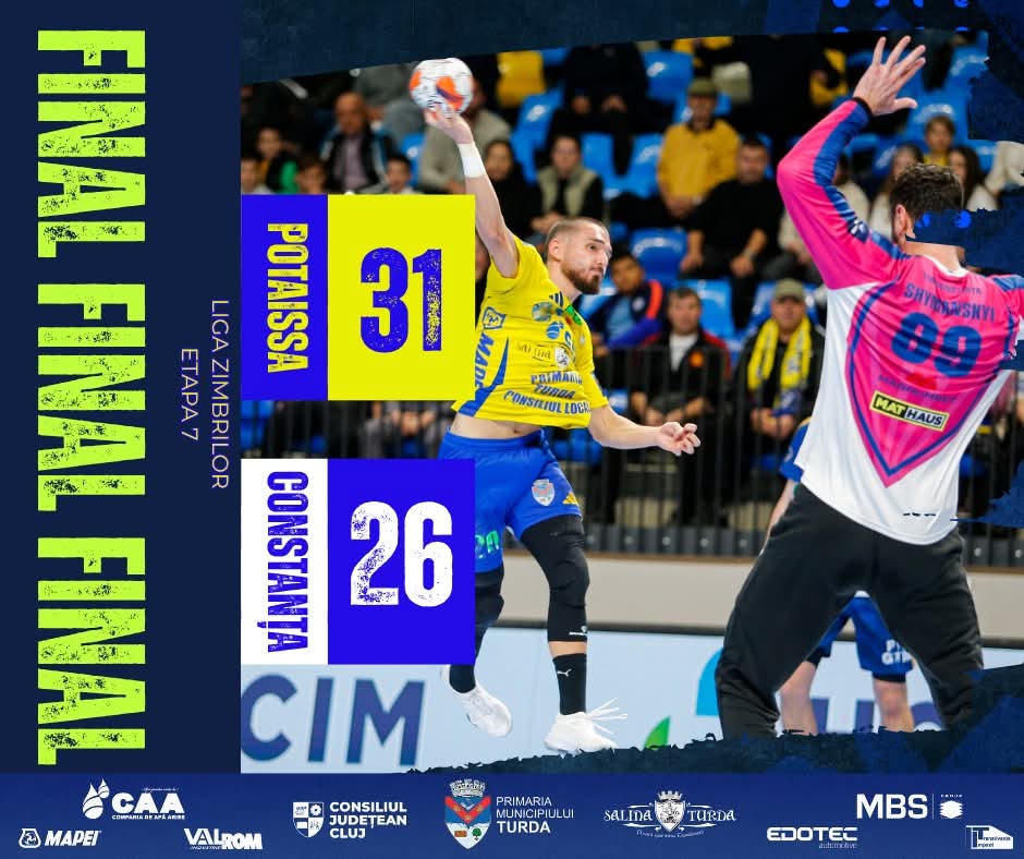 Potaissa Turda continuă seria excelentă de rezultate în Liga Zimbrilor, obținând o victorie clară pe teren propriu în fața echipei CSM Constanța, scor 31-26 (15-11).
