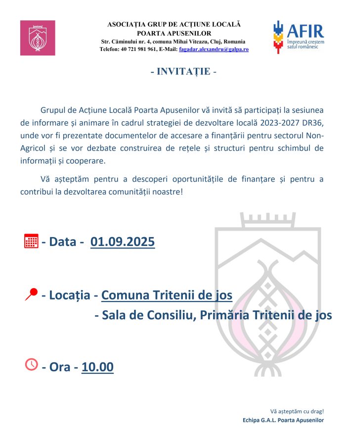 Grupul de AcČiune LocalÄ Poarta Apusenilor vÄ invitÄ sÄ luaČi parte la sesiunea de informare Či animare din cadrul strategiei de dezvoltare localÄ 2023-2027 DR36.