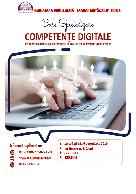 Se dă startul unei noi curse nebune după… alfabetizare digitală! Biblioteca Municipală „Teodor Murășanu” Turda anunță reluarea cursurilor gratuite de competențe digitale, iar vestea a pus orașul pe jar: mai sunt doar 2 locuri libere!