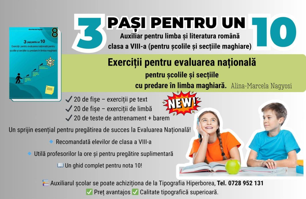 Alina Nagyosi, profesor de limba română la Școala Gimnazială Moldovenești, cu o experiență de peste 10 ani în predarea limbii române elevilor de la secțiile maghiare, a realizat un auxiliar care să-i ajute pe elevi să ia nota dorită la examenul de Evaluare Națională.