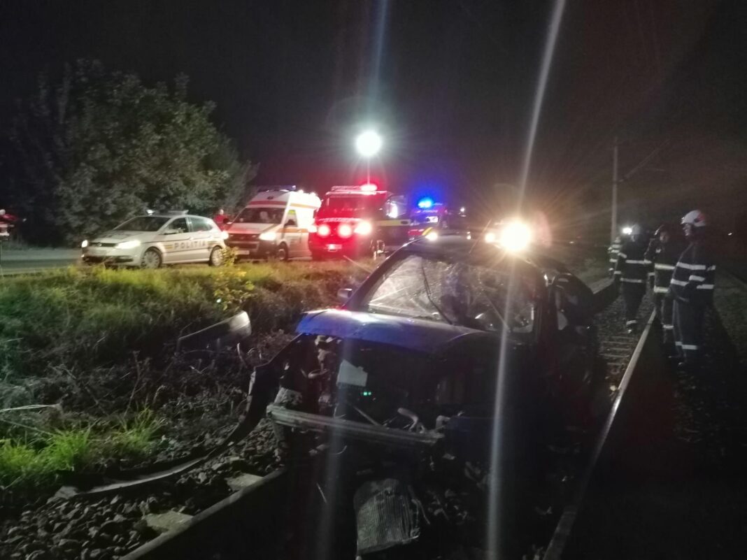 Pompierii au fost alertați în nor orei 23.40, iar în momentul sosirii la fața locului au găsit un autoturism avariat, ahuns pe șinele de tren, iar ocupanții erau ieșiți din acesta și necesitau asistență de specialitate.