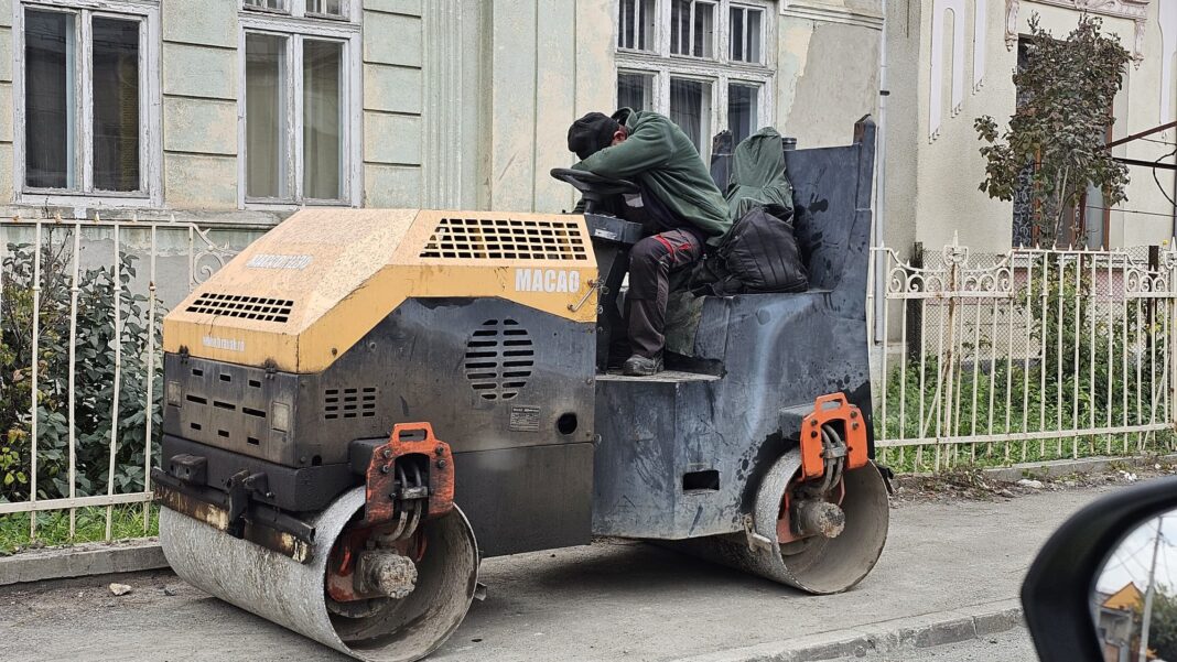 Problema n-ar fi asa de mare daca angajatul respectiv n-ar fi calare pe motocompactorul de asfalt.