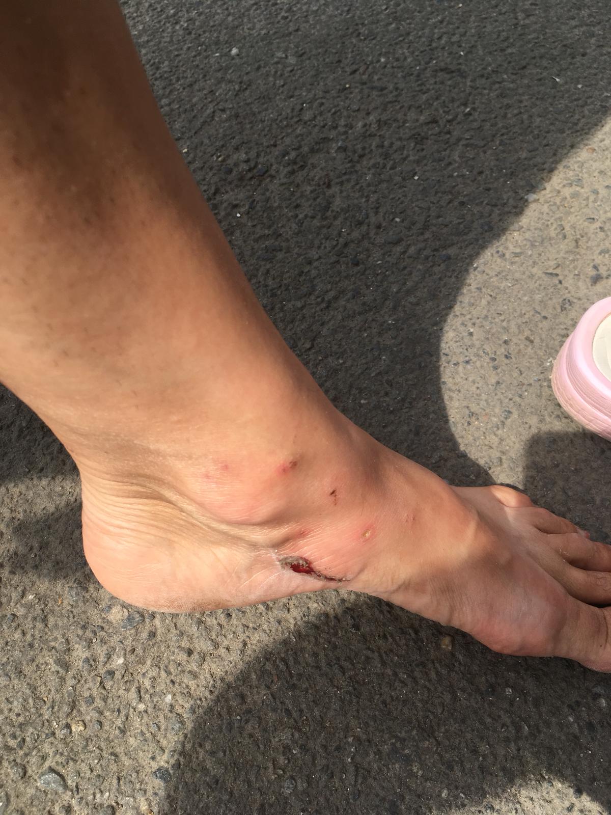 Femeia circula pe carosabil, cand soferul unui autoturism a acrosat-o usor, ranind-o la glezna piciorului stang.