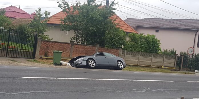 Șoferul unui AUDI a ieșit în decor, pe fondul neatenției sau a altor preocupări. A intrat în rigola de scurgere a apei pluviale și s-a izbit de un cap de pod.