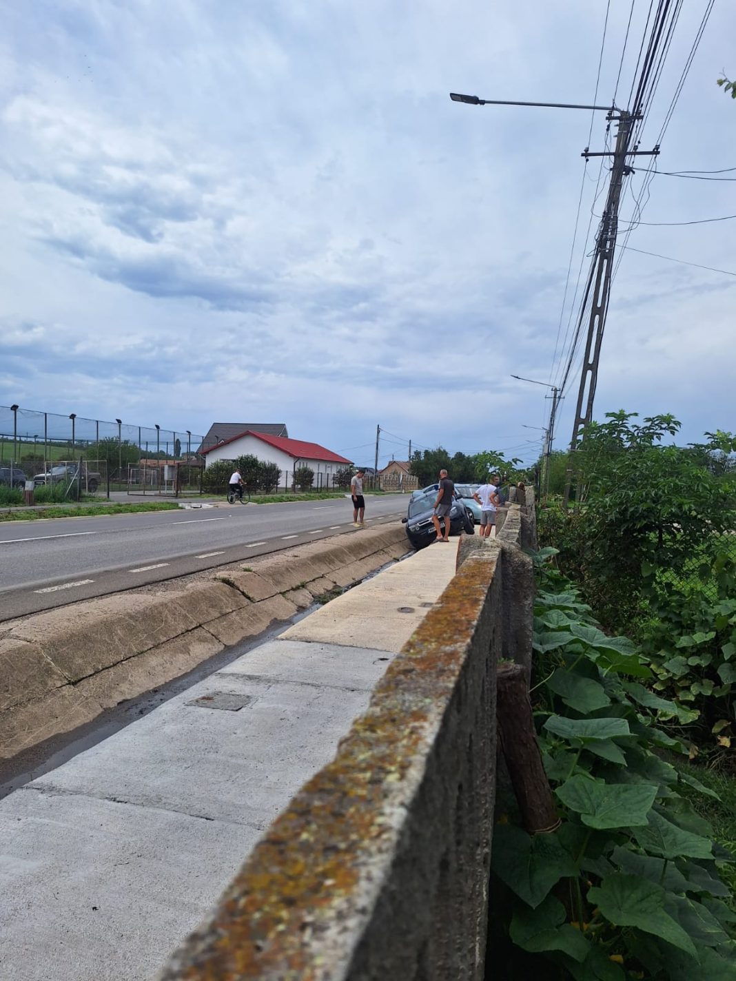 Ca urmare a acestui accident la Luncani, ambele masini au cazut in rigola de scurgere.