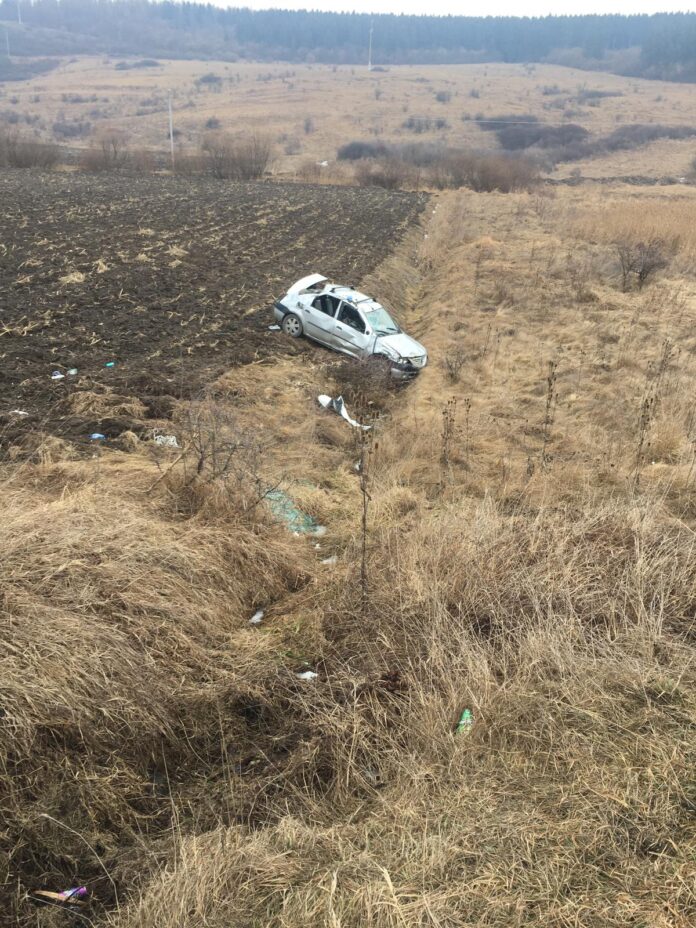 Accident la Mărtinești – a sărit cu Loganu-n arătură