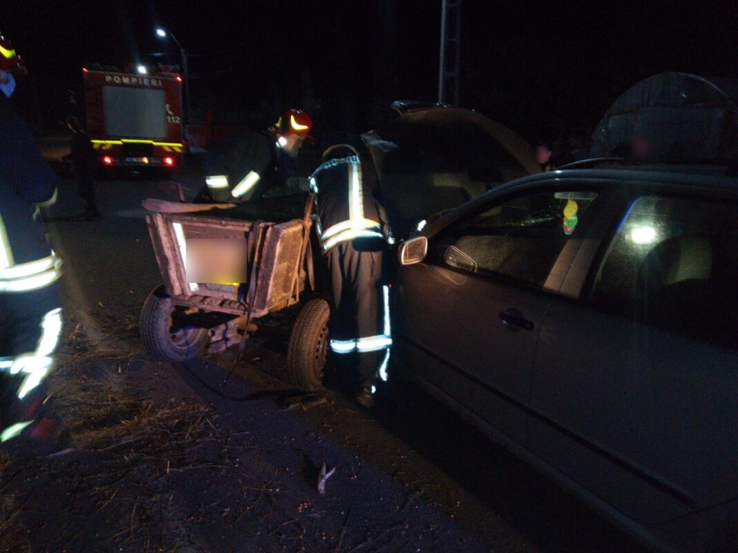 „O autospecială și un echipaj SAJ au fost alertate în jurul orei 21.20 ca urmare a unui accident produs între un autoturism și o căruță, pe raza localității Mihai Viteazul.