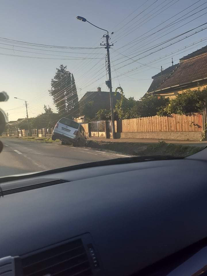 Ca urmare, masina a parasit partea carosabila, ajungand in rigola de scurgere.