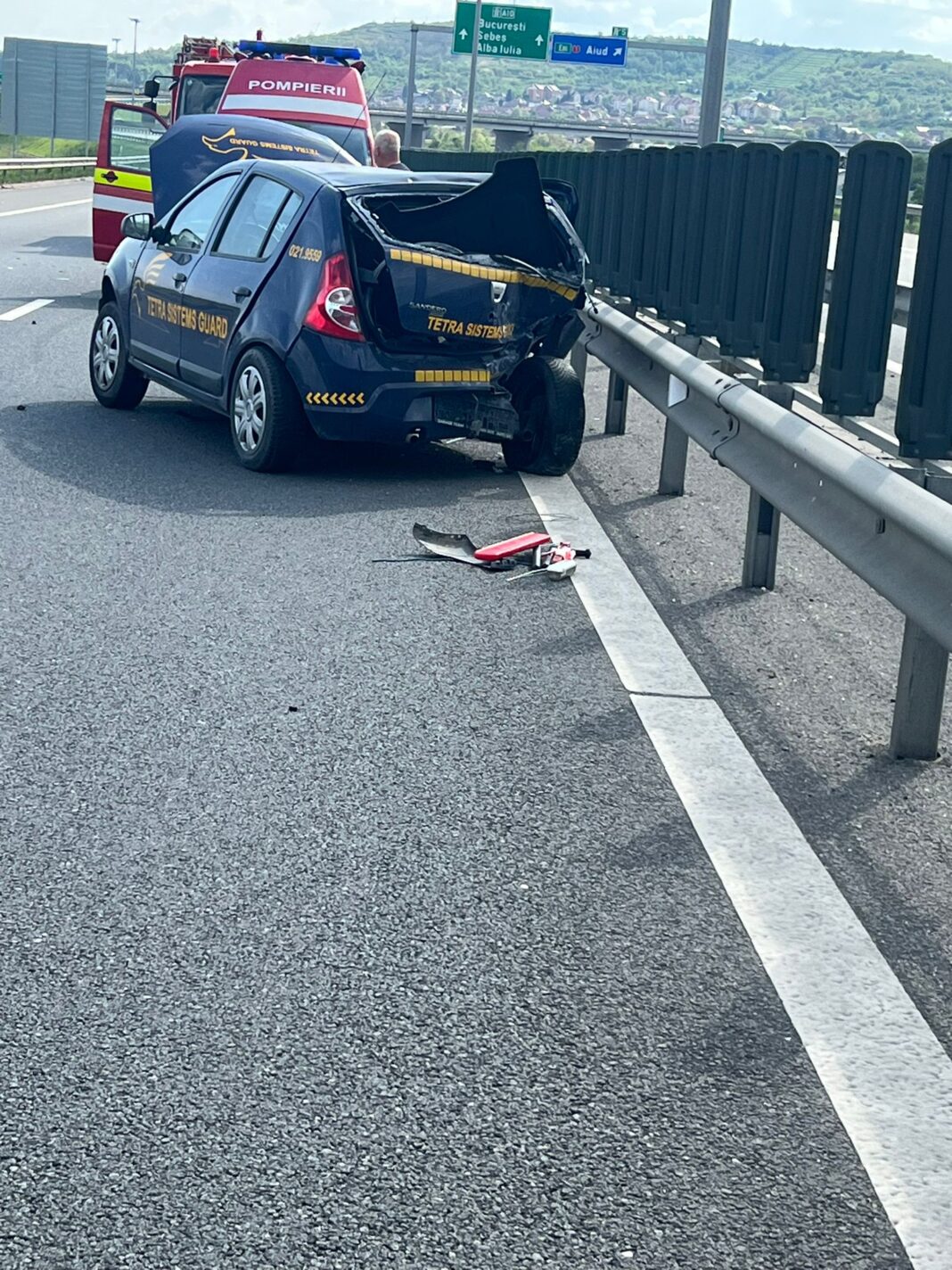 Detașamentul de pompieri Aiud intervine pentru asigurarea măsurilor specifice la un accident rutier produs pe autostrada A10, km50, sens Aiud-Turda.