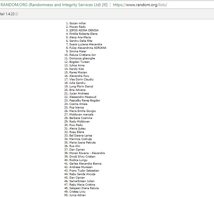 LISTA CÂȘTIGĂTORILOR: