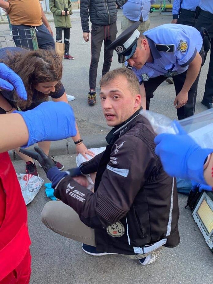 Pompierul și-a dat seama că victima e în pericol și s-a grăbit să-i dea primul ajutor. I-a îndemnat pe trecători să sune la 112, în timp ce-l aducea în poziția de siguranță. Un șofer i-a adus o trusă medicală din mașină, iar personalul de la o shaormerie din apropiere i-a dat o pereche de mănuși din latex.