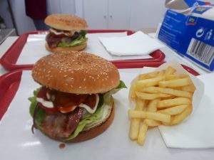 Prima dată am fost la Ovi’s Burger săptămâna trecută, când am mâncat un Super Burger (chiar așa îi zice) cu 180 grame de burger, bacon, brânză, roșii, ceapă, salată iceberg, ketchup și maioneză.