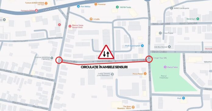 Pe segmentul cuprins între strada Mihai Viteazul și strada Tineretului, circulația rutieră se va desfășura în ambele sensuri.