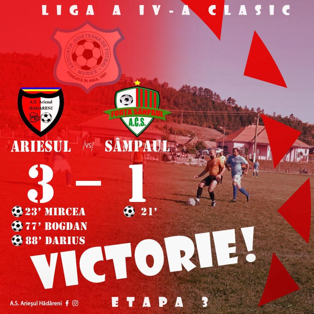 După o victorie, acasă, cu Gaz Metan Daneș și o înfrângere în deplasare cu Dombo Dâmbău, pe stadionul „Arieșul” din Hădăreni a venit Forța Sânpaul.