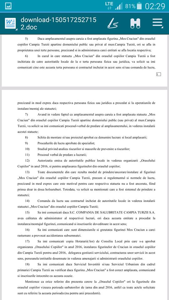 Ultima solicitare remisă de familia Hatos și înregistrată la Primăria Câmpia Turzii este din luna octombrie a anului 2017.
