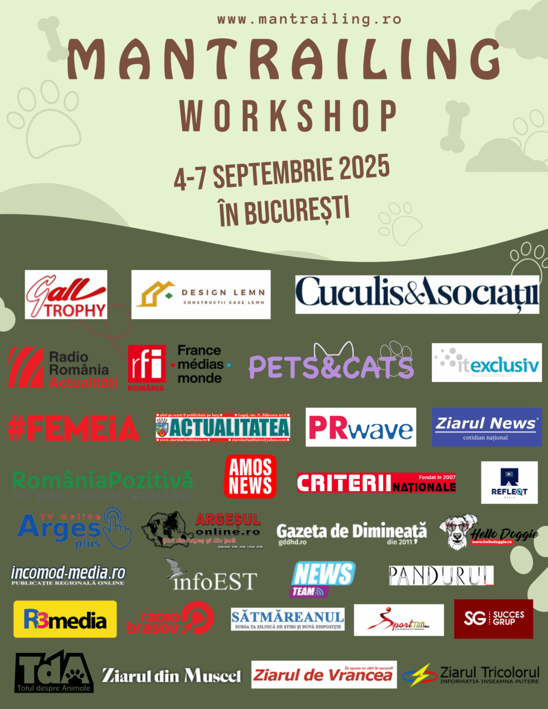 Multumim partenerilor: DesignLemn.ro, Galltrophy.ro, Birou Avocatura Cuculis si Asociatii, RadioRomania.ro, Rfi.fr/ro, Pets&Cats, ZiarulActualitatea.ro, RomaniaPozitiva.ro, AmosNews.ro, ITexclusiv.ro, ZiarulNews.ro, ArgesPlus.ro, ArgesulOnline.ro, Criterii.ro, GddHD.ro, HelloDoggie.ro, Incomod-Media.ro, Infoest.ro, RefleqtMedia.ro, NewSteam.ro, Pandurul.ro, R3Media.ro, PRwave.ro, Revista-Femeia.ro, SporTtim.ro, Succes-Grup.ro, TotulDespreAnimale.ro, ZiarulDinMuscel.ro, Ziaruldevrancea.ro, ZiarulTricolorul.ro, Satmareanul.net, RadioBrasov.ro