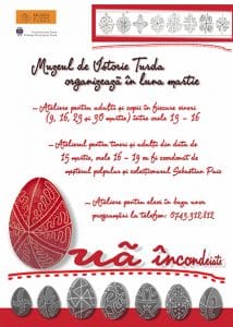 Muzeul de Istorie Turda organizează în luna martie 2018 ateliere interactive „Ouă încondeiate”. Cea de a VI-a ediţie, desfăşurată în anul aniversării Centenarului Marii Uniri, se adresează atât copiilor, cât şi adulţilor ce vor avea prilejul să deprindă meșteșugul încondeierii ouălor în tehnica tradiţională cu ceară topită şi băi succesive de culoare – meșteșug specific tuturor provinciilor istorice românești.