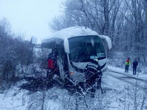 În această dimineață, pe fondul condițiilor de drum JEGOASE, un autocar plin cu elevi a derapat, căzând în șanț, într-o localitate de lângă Reghin, județul Mureș.
