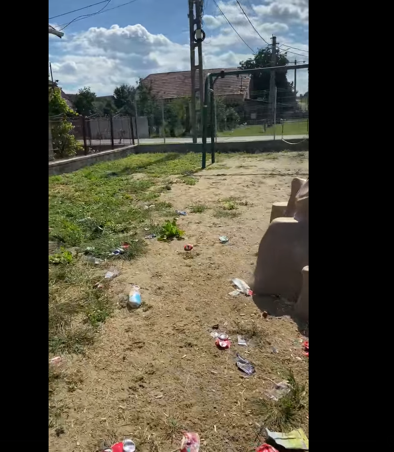 Spațiul de joacă de lângă moara de ciocane a fost inundat, efectiv, cu gunoaie – așa cum reiese dintr-un videoclip postat pe rețelele de socializare.