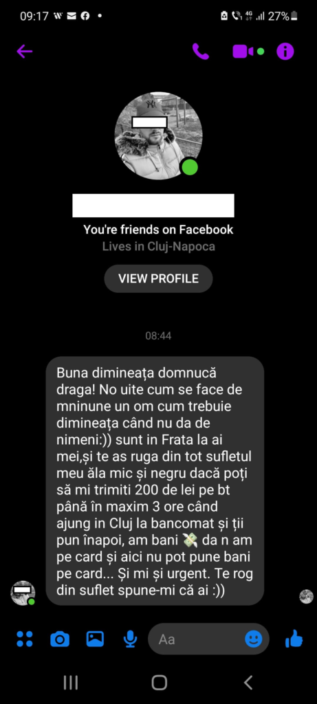 Dragi cititori, dacă vă abordează ORICE, mai ales dacă nu-l cunoașteți, și vă cere să-i împrumutați bani prin BT Pay …nu o faceți!