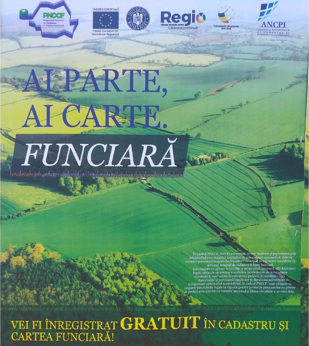 Cetățenii celor 3 sate mari componente ale comunei sunt invitați la o serie de întâlniri, unde li se va prezenta modalitatea prin care vor putea să-și cadastreze terenurile GRATUIT, grație unei finanțări europene obținute de Primăria Chețani.