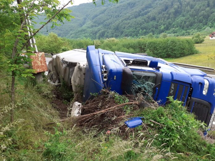 O autospecială și un echipaj SMURD au fost dislocate în localitatea Bucea, iar la intrarea în localitatea Bucea au găsit camionul răsturnat pe partea laterală, iar șoferul era ieșit din acesta.