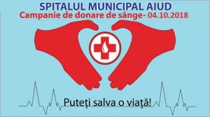 „Campanie de donare sânge – la Spitalul Municipal Aiud, în data de 04.10.2018, începând cu ora 8:00, în Ambulatoriul de specialitate, etaj 1 – Cabinet Pediatrie ( lângă Fisier ).
