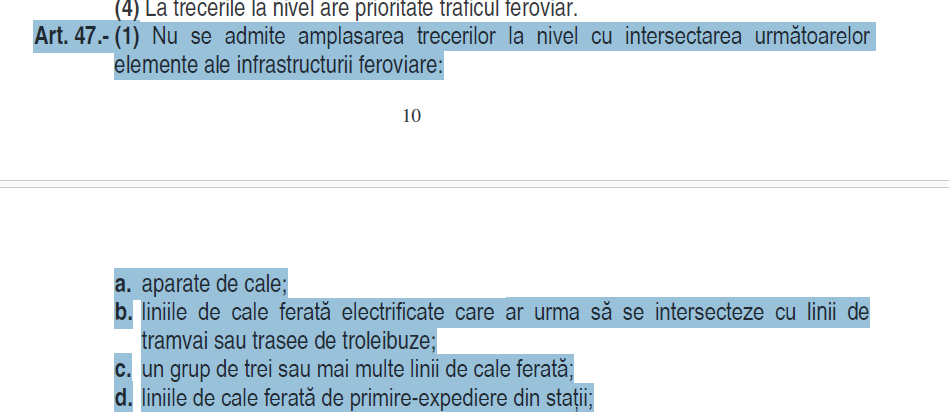 Art. 47 alin. (1) lit. c): „Nu se admite amplasarea trecerilor la nivel cu intersectarea… unui grup de trei sau mai multe linii de cale ferată.” FSTFR, ÎNSĂ ceea ce reprezentanții TPF Inginerie SRL, respectiv ISPCF SA nu menționează este faptul că acel ordin este vechi de 24 de ani. Deci în 24 de ani NIMENI nu a vrut să desființeze trecerea la nivel cu calea ferată.