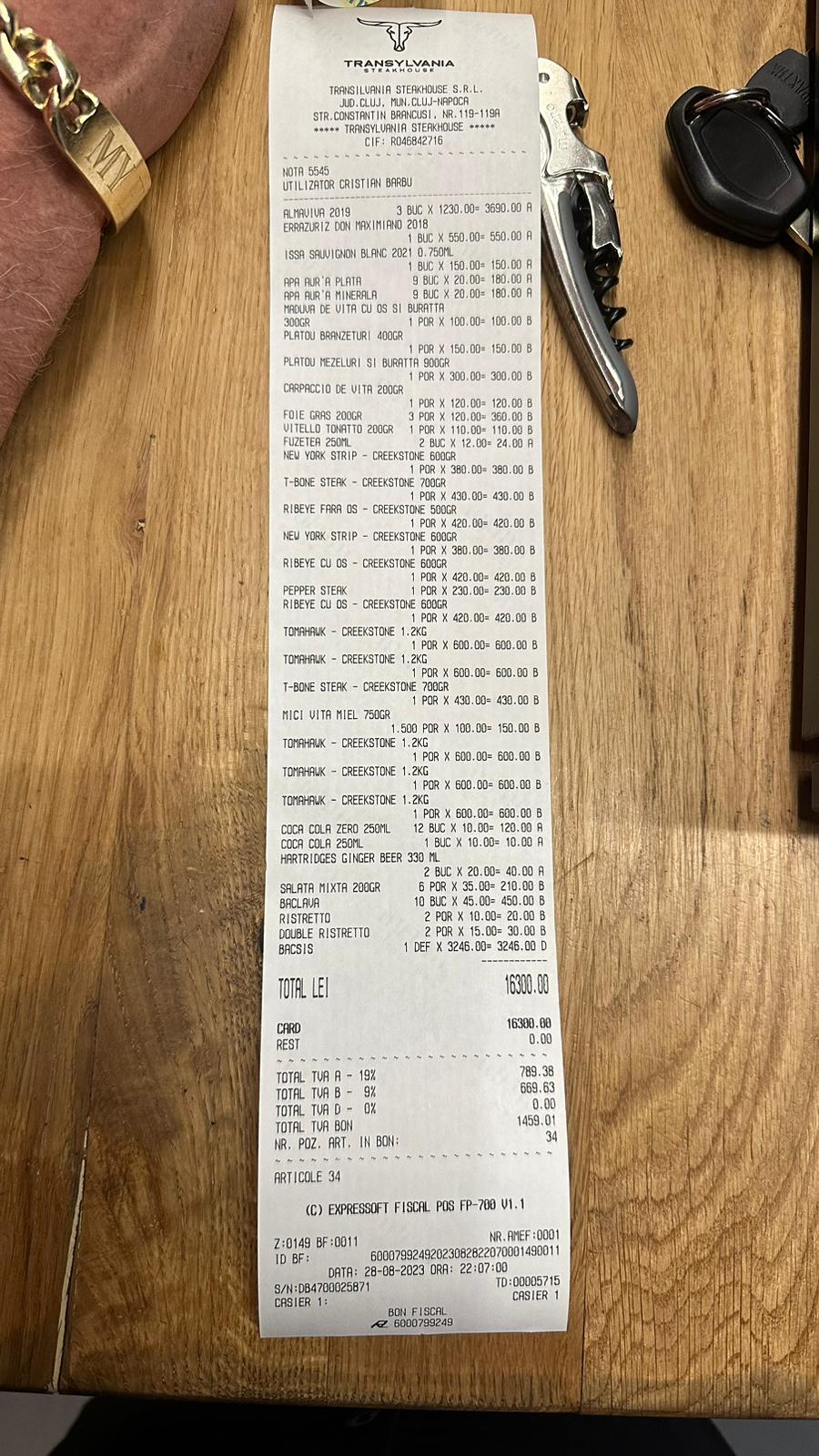 La Transylvania Steakhouse s-a platit cea mai mare nota de plata din cate s-au auzit pe la Cluj, 16300 de lei pentru o cina… dar CE CINA!
