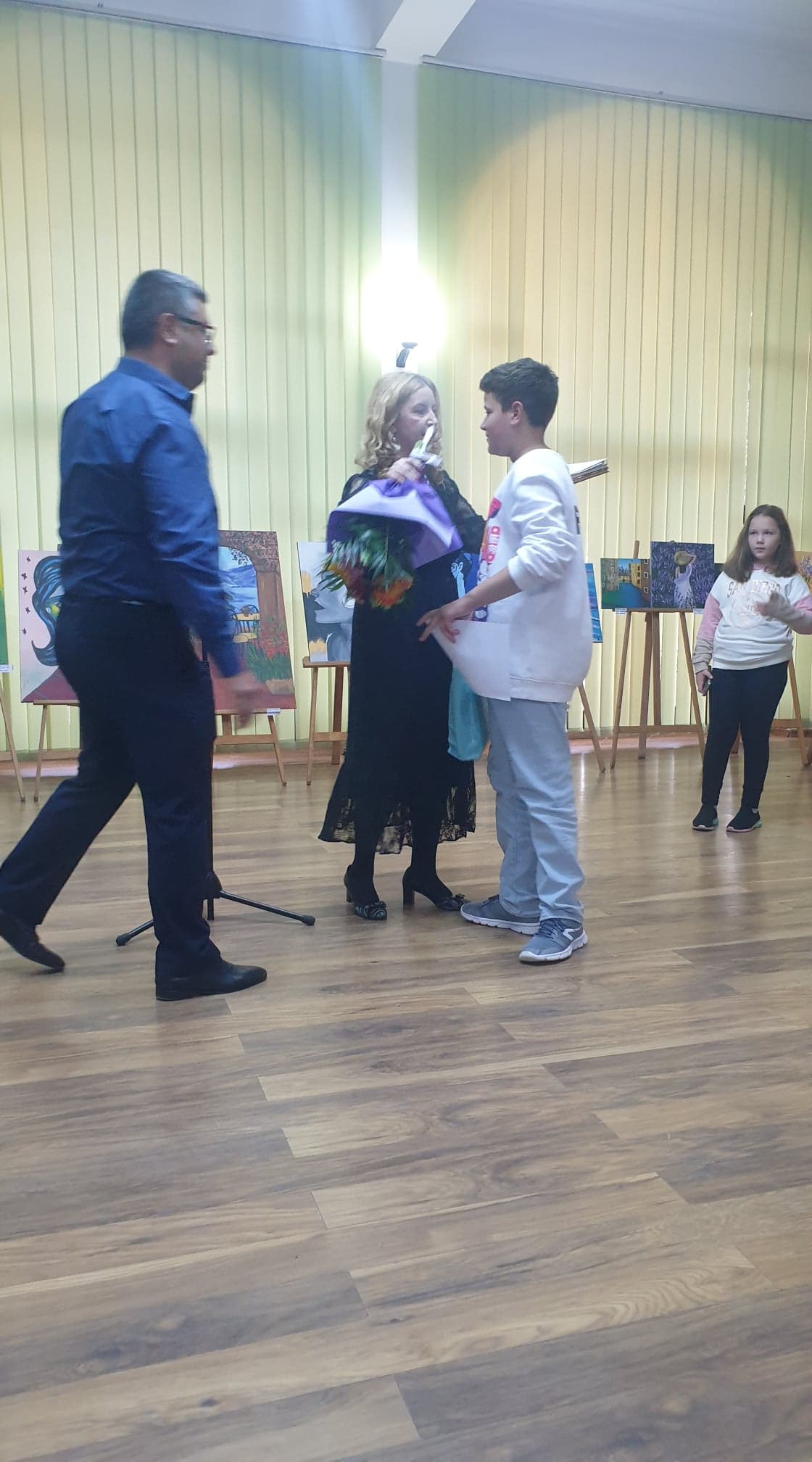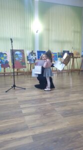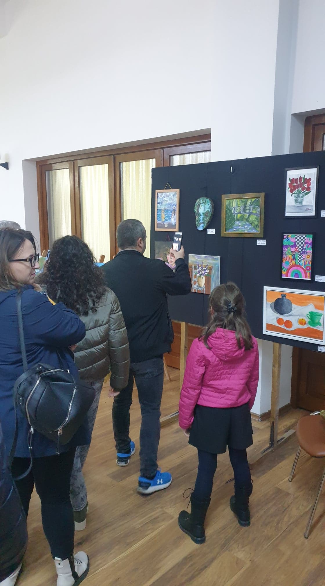 Sub cârmuirea doamnei profesor, Iuliana Pop, cei 15 micuți și-au expus creațiile în cadrul primului vernisaj din viața lor.