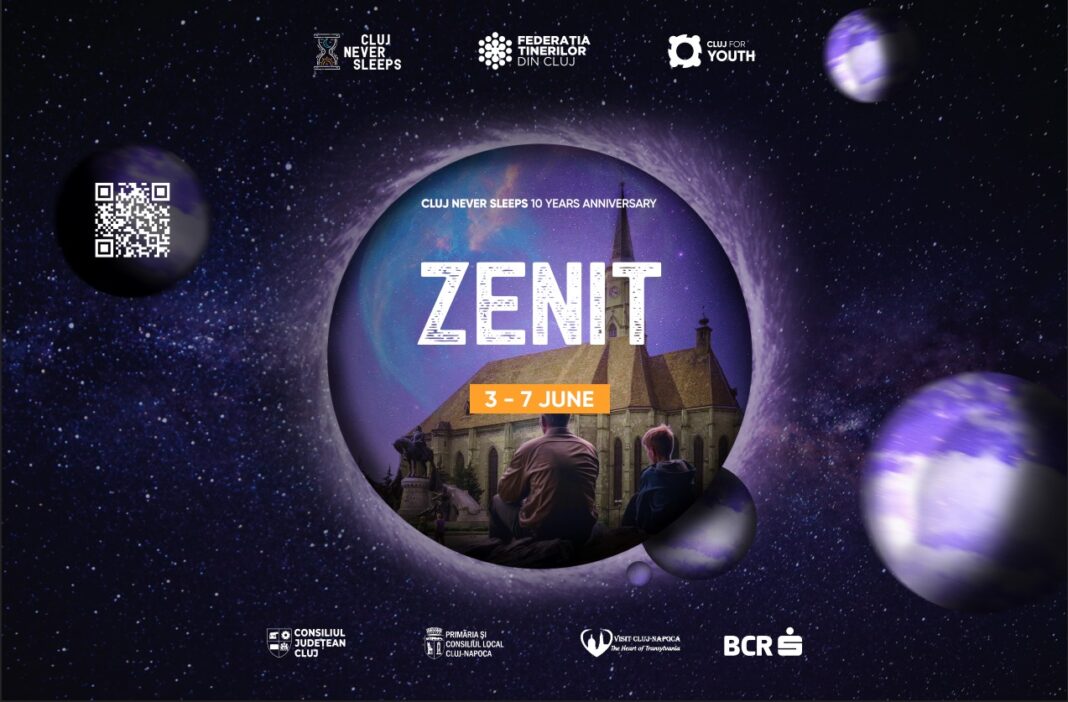 Sub tematică captivantă a acestui an, “Zenit”, evenimentul promite să aducă un val de creativitate și inovație în inimile locuitorilor orașului. Prin activități diverse “Cluj Never Sleeps” va transforma orașul într-un laborator de idei și expresie artistică. Participanții vor avea oportunitatea de a se implica în workshop-uri interactive, proiecte colaborative și de a cunoaște oameni pasionați de artă. De asemenea, vor putea să-și extindă rețeaua de contacte și să se inspire de la alți creatori și inovatori din Cluj-Napoca. Evenimentul va oferi o varietate de activități captivante și inedite, inclusiv celebrele Silent Party și Midnight Snack, care promit să ofere momente unice.