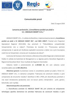 Comunicat de presă Data 13 august 2018 Lansarea proiectului „Consolidarea poziției pe piață a S.C. ANDALEX SMART S.R.L.”