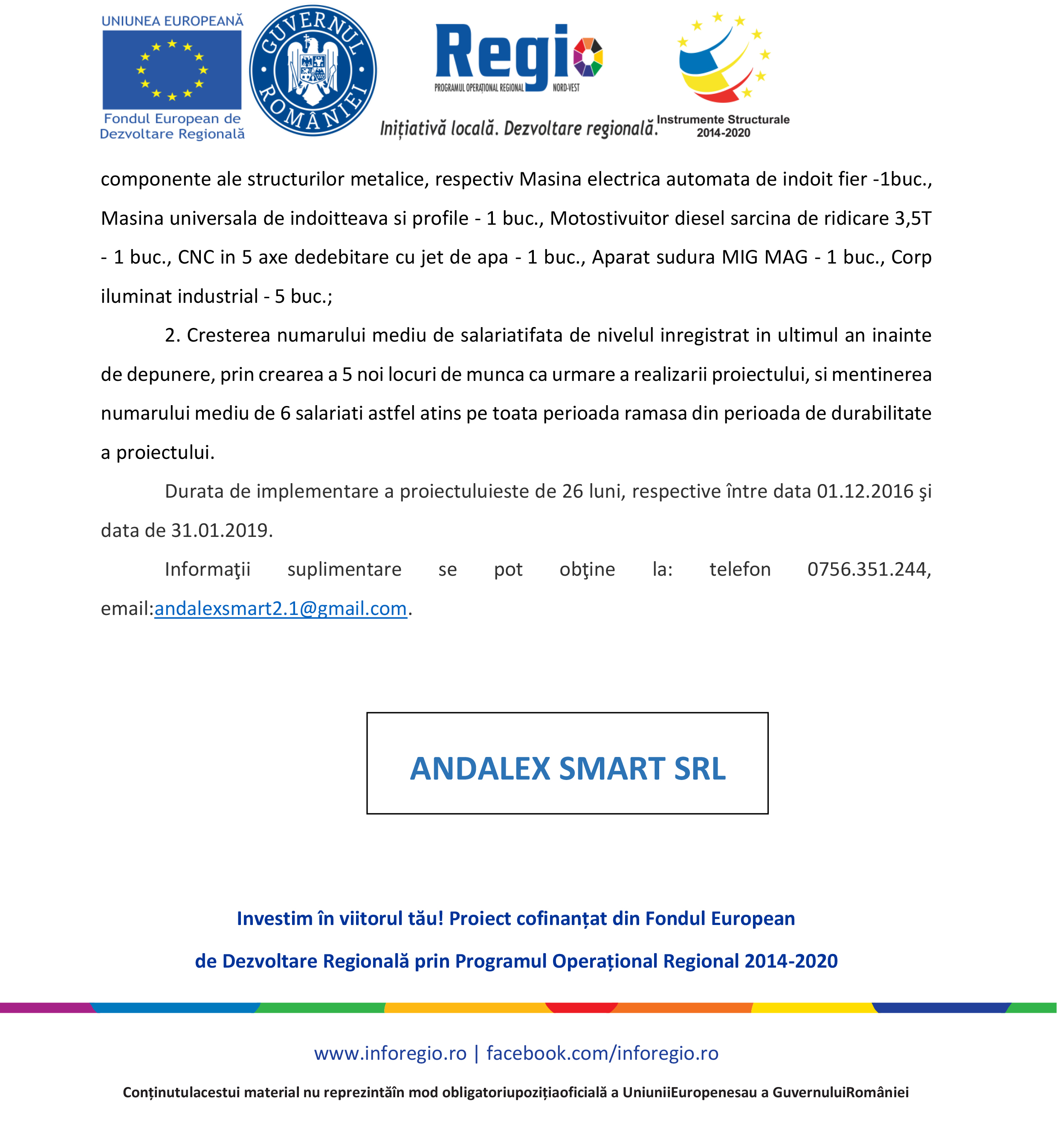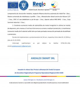 poziției pe piață a SC ANDALEX SMART SRL”, cod SMIS 109677, finanțat prin Programul