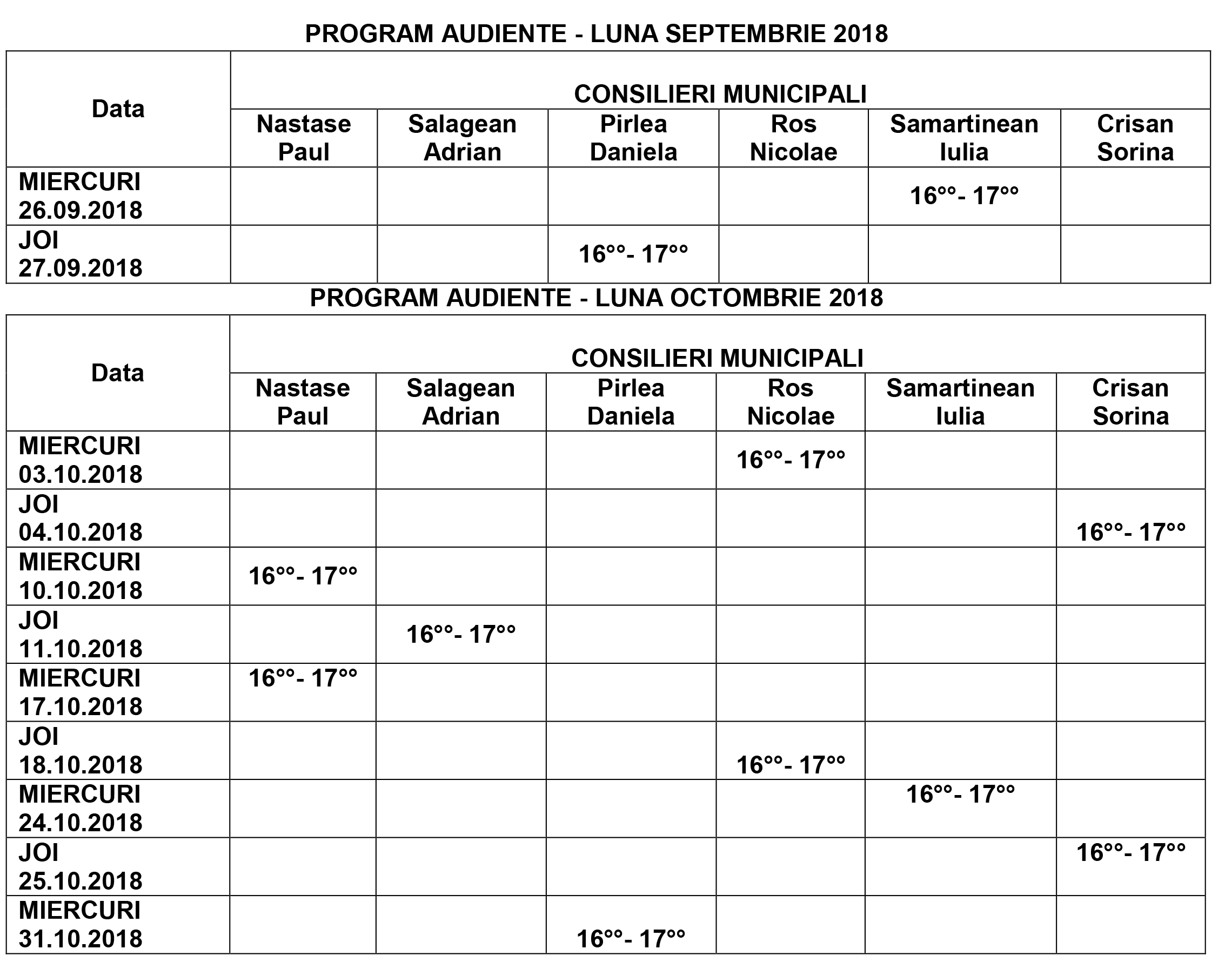 Echipa Consilierilor PSD au realizat un program de audiențe, în cadrul căruia se vor putea înscrie toți cei care doresc să stea de vorbă cu aleșii locali. Prin acest program ne dorim să îmbunătățim relația cu cetățenii și să le ascultăm doleanțele și problemele, astfel încât acestea să poată fi rezolvate în cel mai scurt timp.