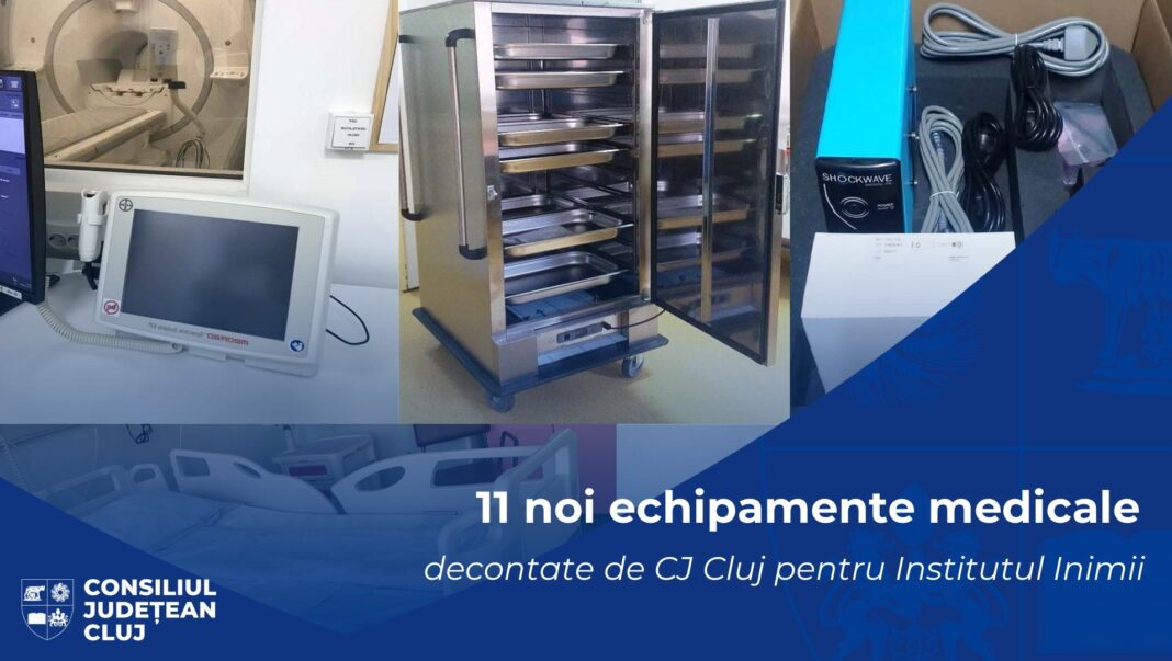 Consiliul Județean Cluj a decontat achiziția a 11 aparaturi și echipamente medicale pentru Institutul Inimii „Niculae Stăncioiu” din Cluj-Napoca, unitate sanitară aflată în subordinea Ministerului Sănătății.