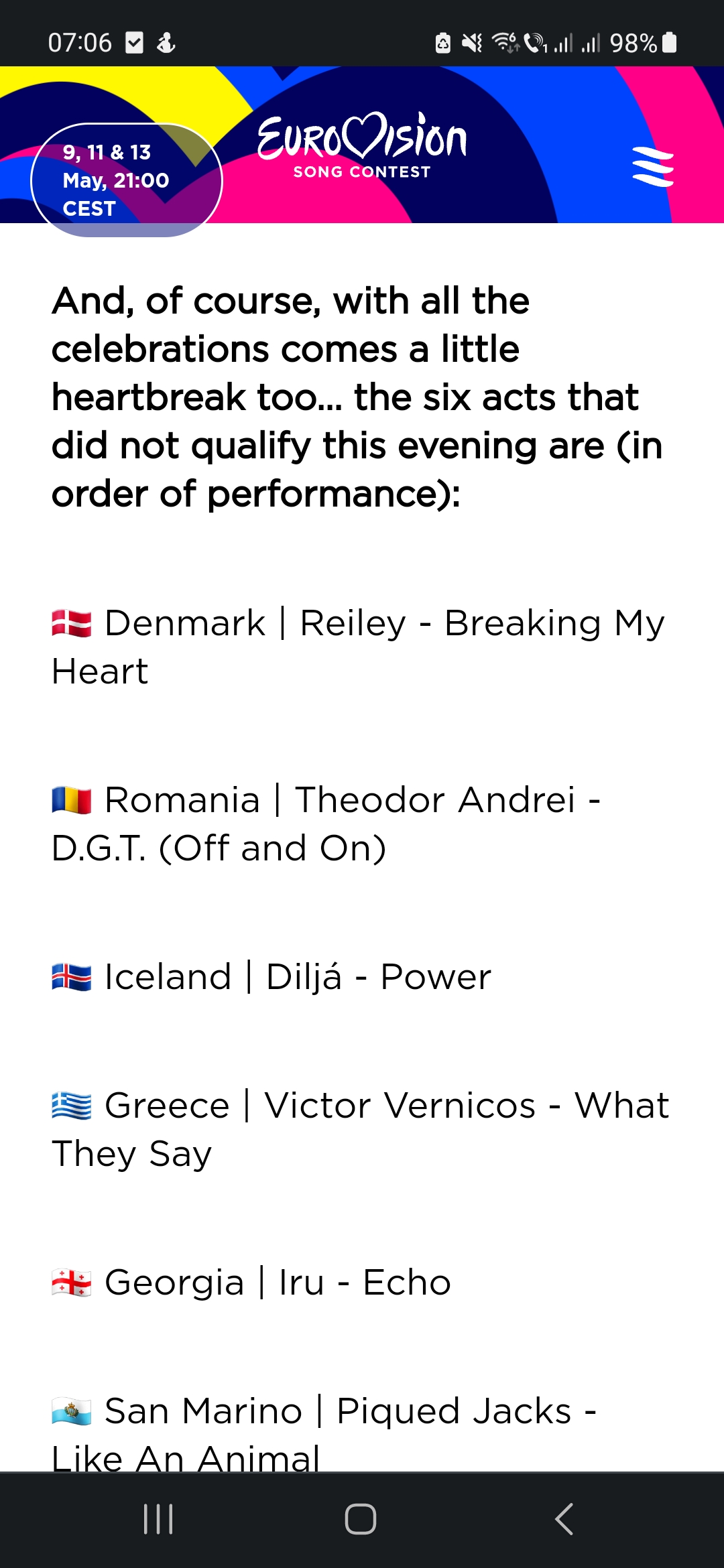 Nu a reusit sa se califice in finala, demonstrandu-si “capacitatile artistice”.