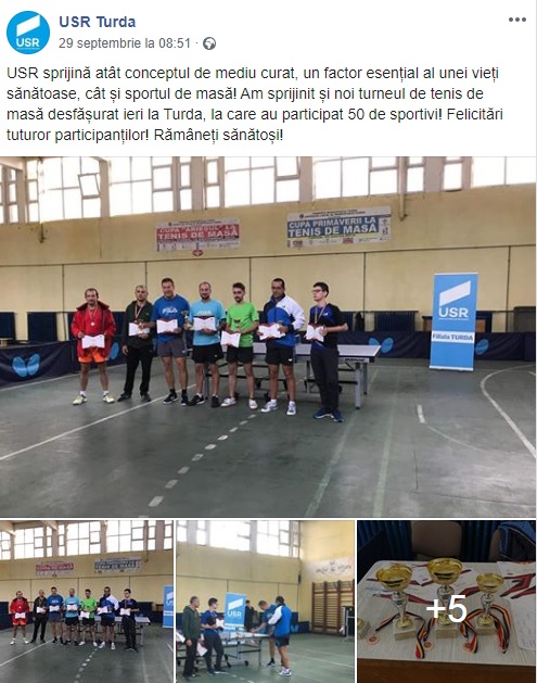 Doar că … surpriză, acea competiție de tenis de masă a fost transformată într-un adevărat circ politic, în  Sala de Sport a Liceului Teoretic, Liviu Rebreanu, unde … pe lângă Cosmin Pop predă și Ciprian Rigman, președintele USR Turda.