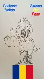 N-a trecut mult de la atacul revistei Charlie Hebdo la adresa tenismenei noastre, erou național, Simona Halep și – mânați de mârșăvia de pamflet comisă de editorii revistei, peste 12.000 de români au intrat pe pagina de facebook a paginii, pentru a scădea ratingul paginii.