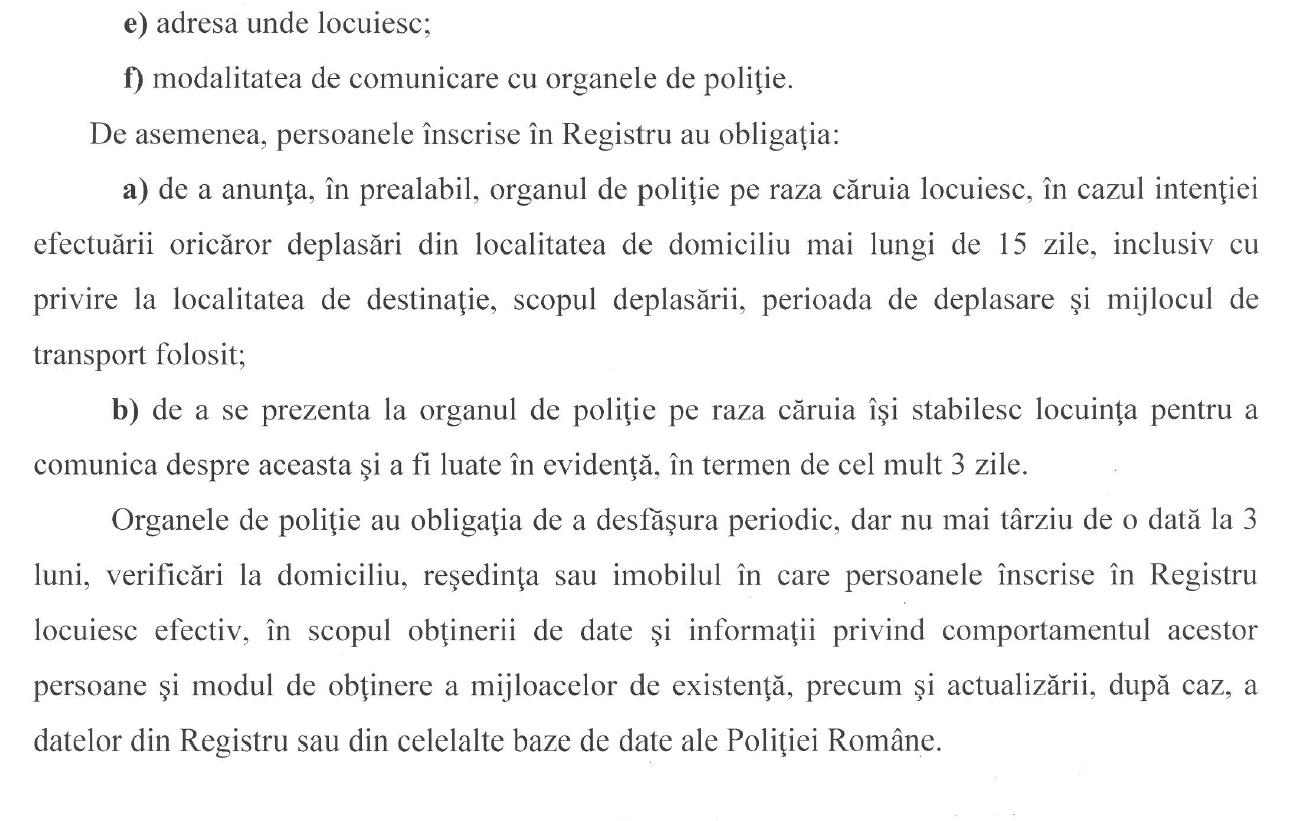 Cât privește partea cu „Organele de poliție au obligația de a desfășura periodic, dar nu mai târziu de o dată la 3 luni, verificări la domiciliu…” … cum fac verificările, dacă prădătorii sexuali nu-și comunică domiciliul? 🙂