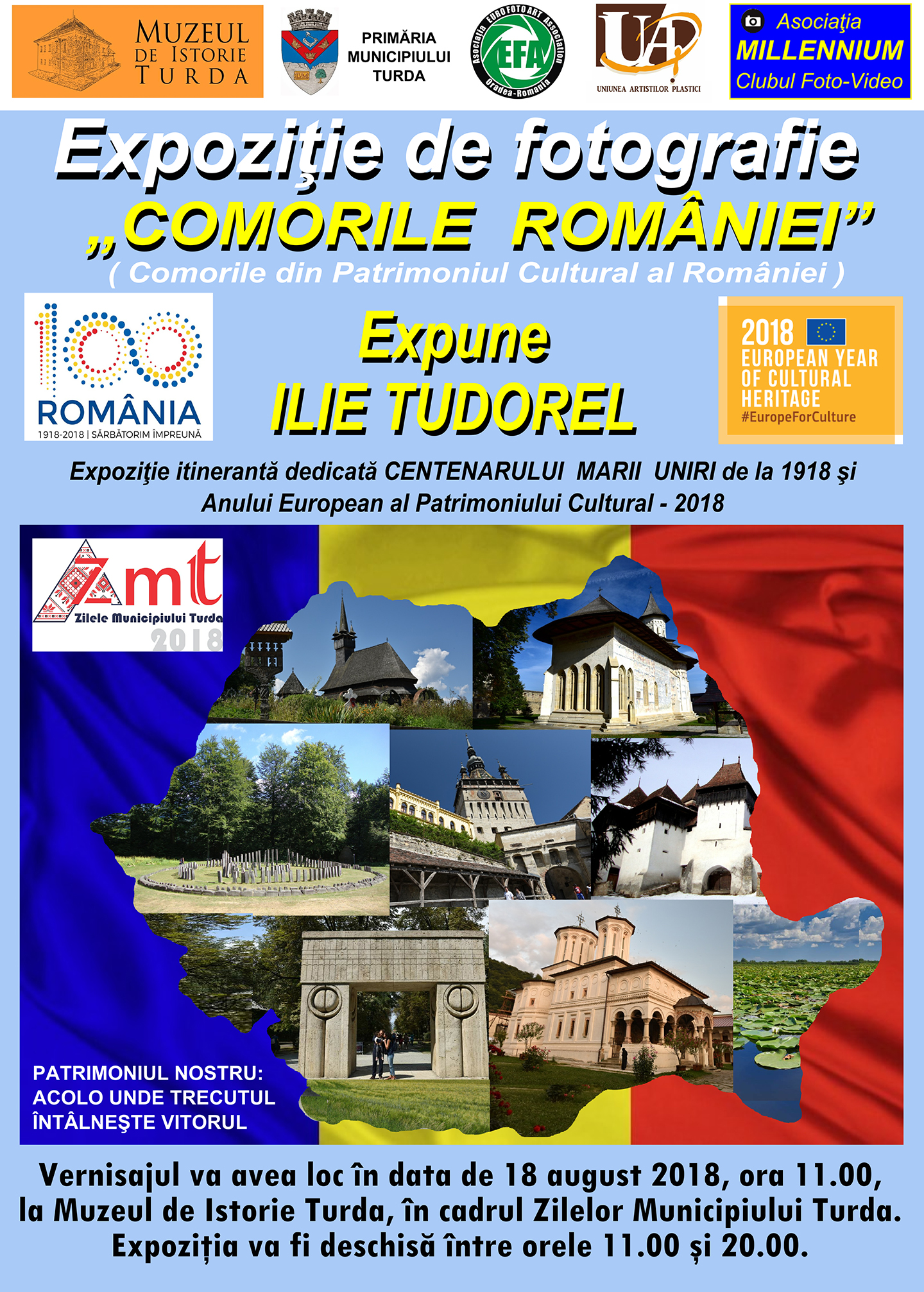Expoziţia de artă fotografică „Comorile României” este o expoziţie-eveniment care îşi propune să promoveze în rândul iubitorilor de cultură din ţară şi din străinătate cele mai importante valori ale patrimoniului cultural din România.Turneul naţional al expoziţiei va parcurge toate regiunile istorice ale României, până în prezent expoziţia fiind expusă în regiunile Banat, Bucovina, Crişana, Maramureş,Oltenia şi Transilvania în muzee şi alte instituţii de cultură. În centrul regiunii Transilvania expoziţia va fi expusă şi în 18 august 2018 la Muzeul de Istorie Turda din municipiul Turda, judeţul Cluj, în cadrul „Zilelor Municipiului Turda” ediţia 2018.