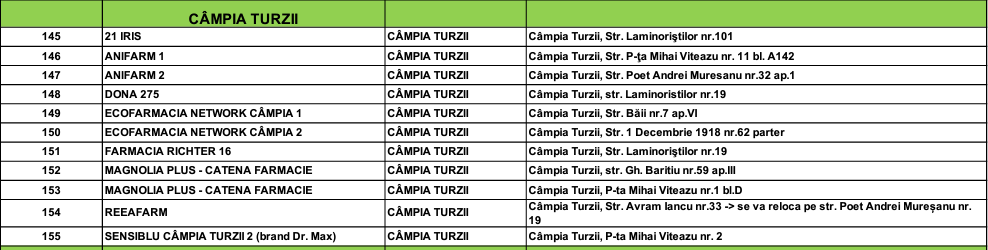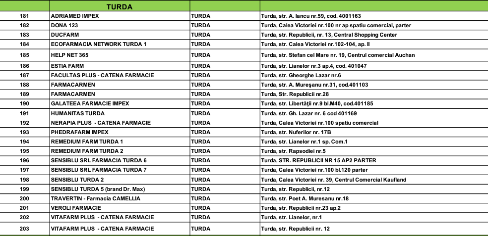 Iată lista cu farmaciile din zona Turda – Câmpia Turzii unde vă puteți adresa în cazul în care vă simțiți rău: