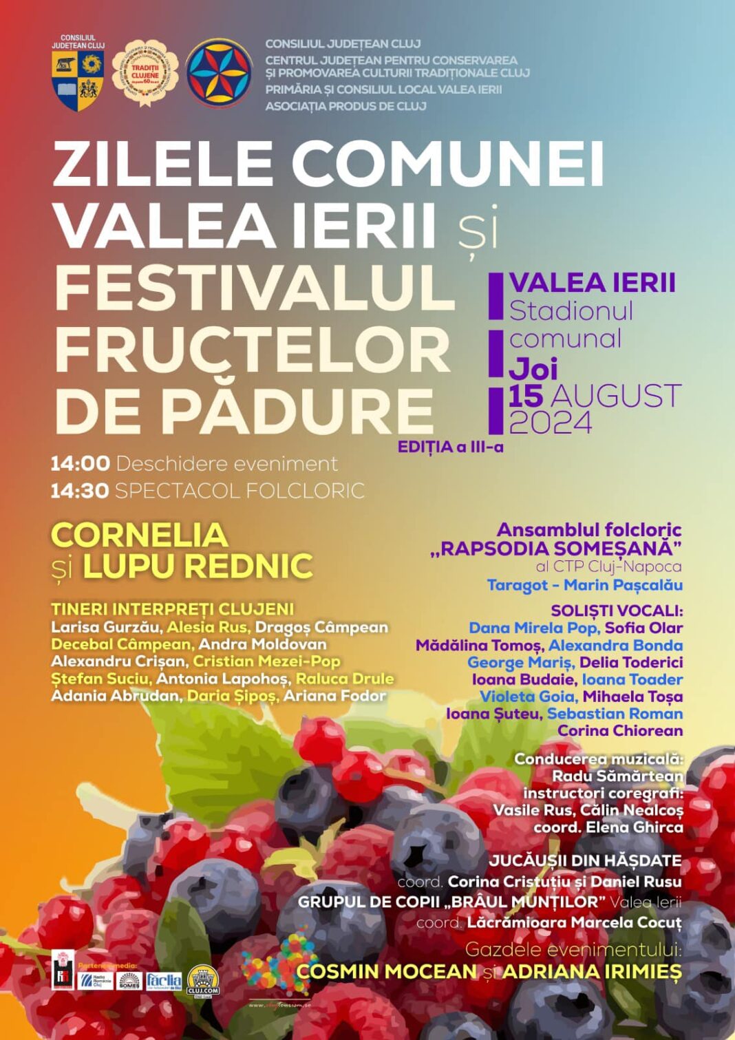 De Sfânta Maria, joi, 15 august 2024, la Valea Ierii, iubitorii de natură, cultură și produse tradiționale sunt așteptați la cea de-a treia ediție a Festivalului Fructelor de Pădure.