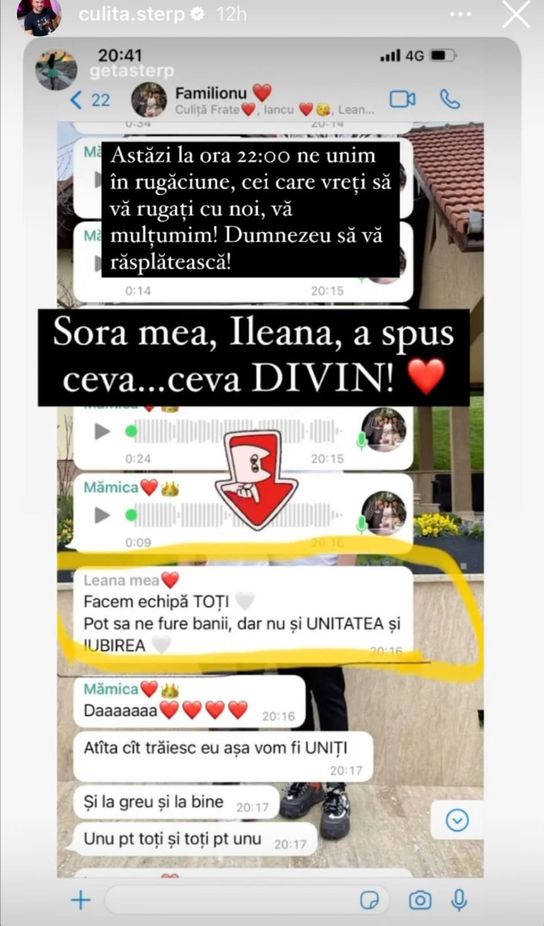 ”Atât timp cât trăiesc eu, așa vom fi, uniți. Și la greu, dar și la bine. Unul pentru toți și toți pentru unu”, a spus şi mama Geta.