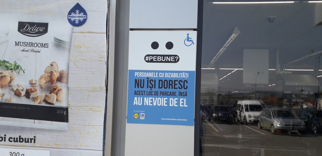 Astfel, în fața locurilor destinate persoanelor cu dizabilități, a apărut un banner interesant, cu textul: „#Pebune ? Persoanele cu dizabilități NU ÎȘI DORESC acest loc de parcare, însă au nevoie de el.”