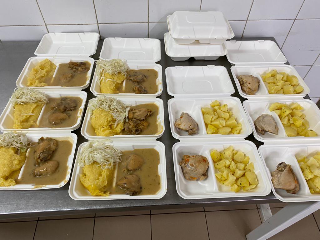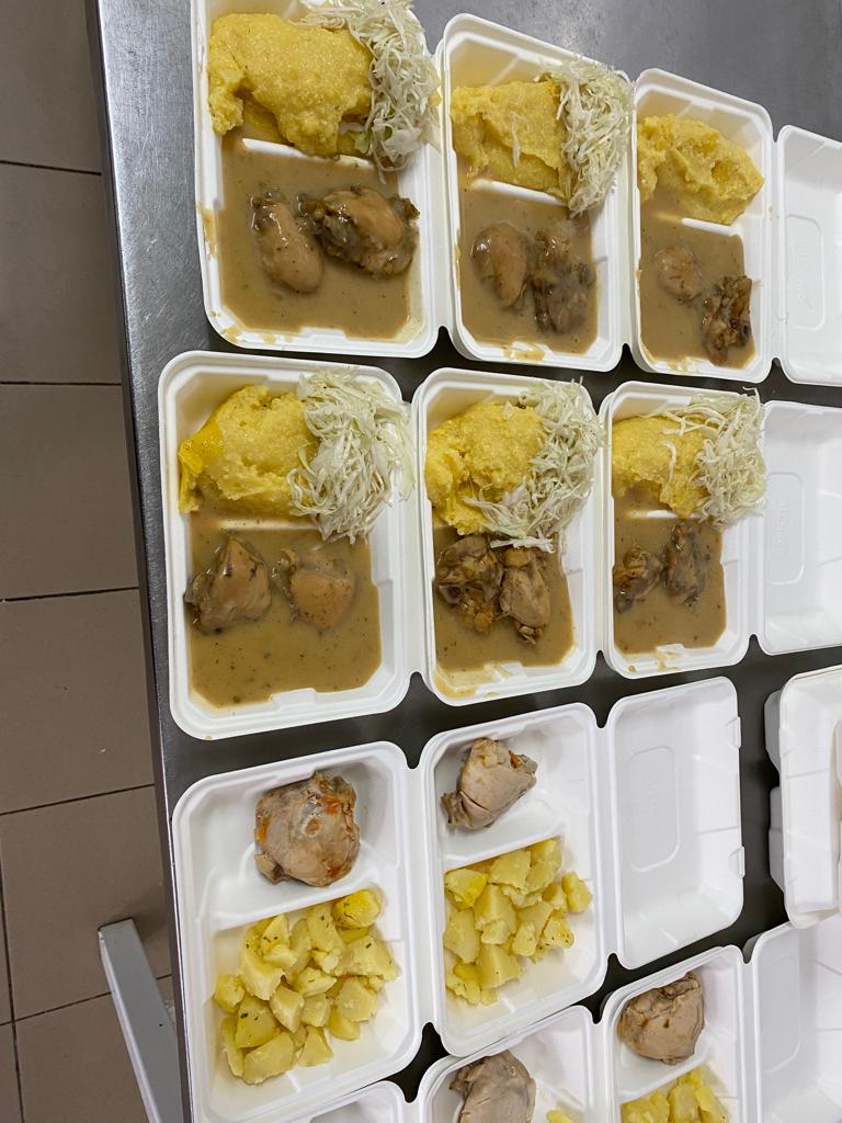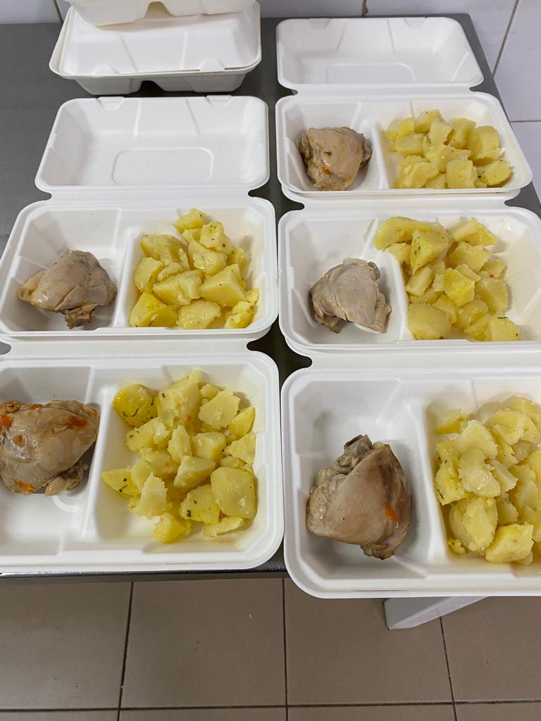La ora pranzului, pentru fiecare pacient se serveste o masa compusa din doua feluri de mancare.