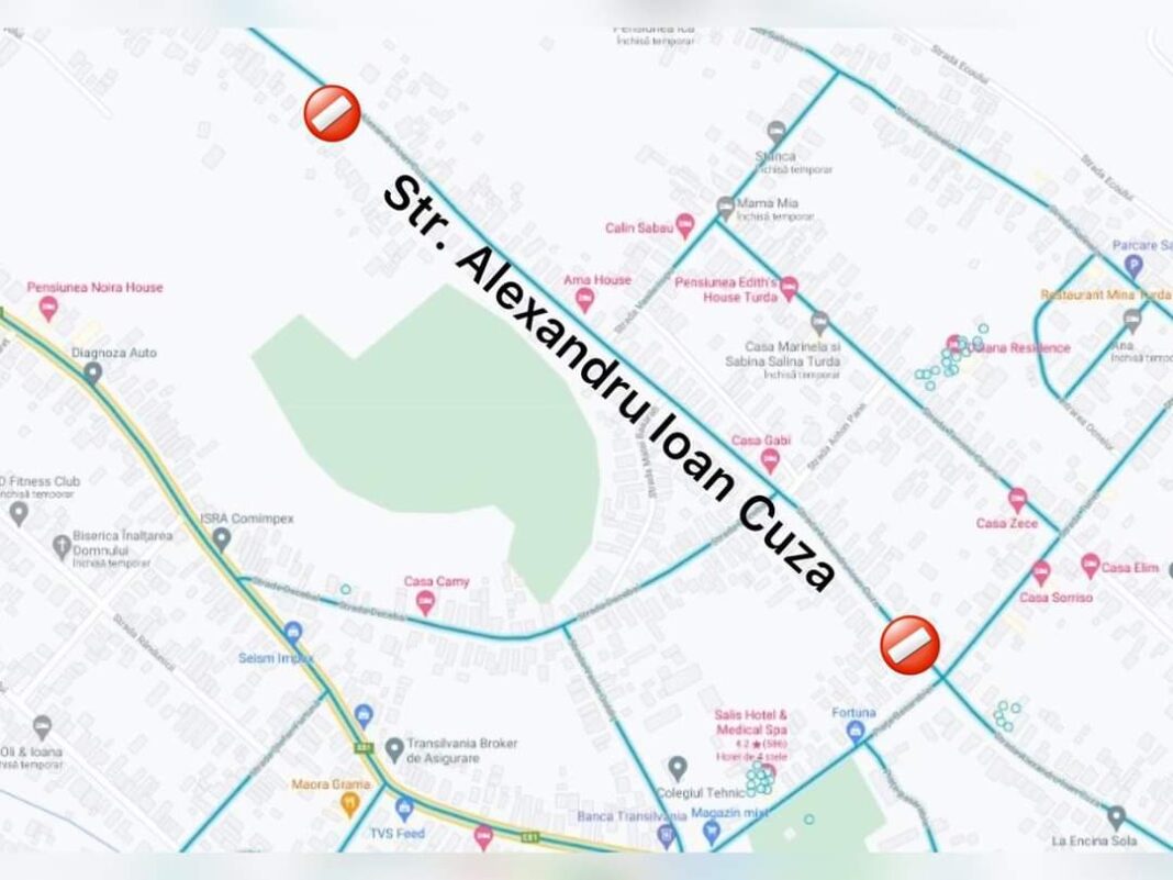 In aceasta dupa amiaza, Primaria Turda a remis un comunicat de presa prin care anunta instituirea de restrictii de circulatie pe strada Alexandru Ioan Cuza.