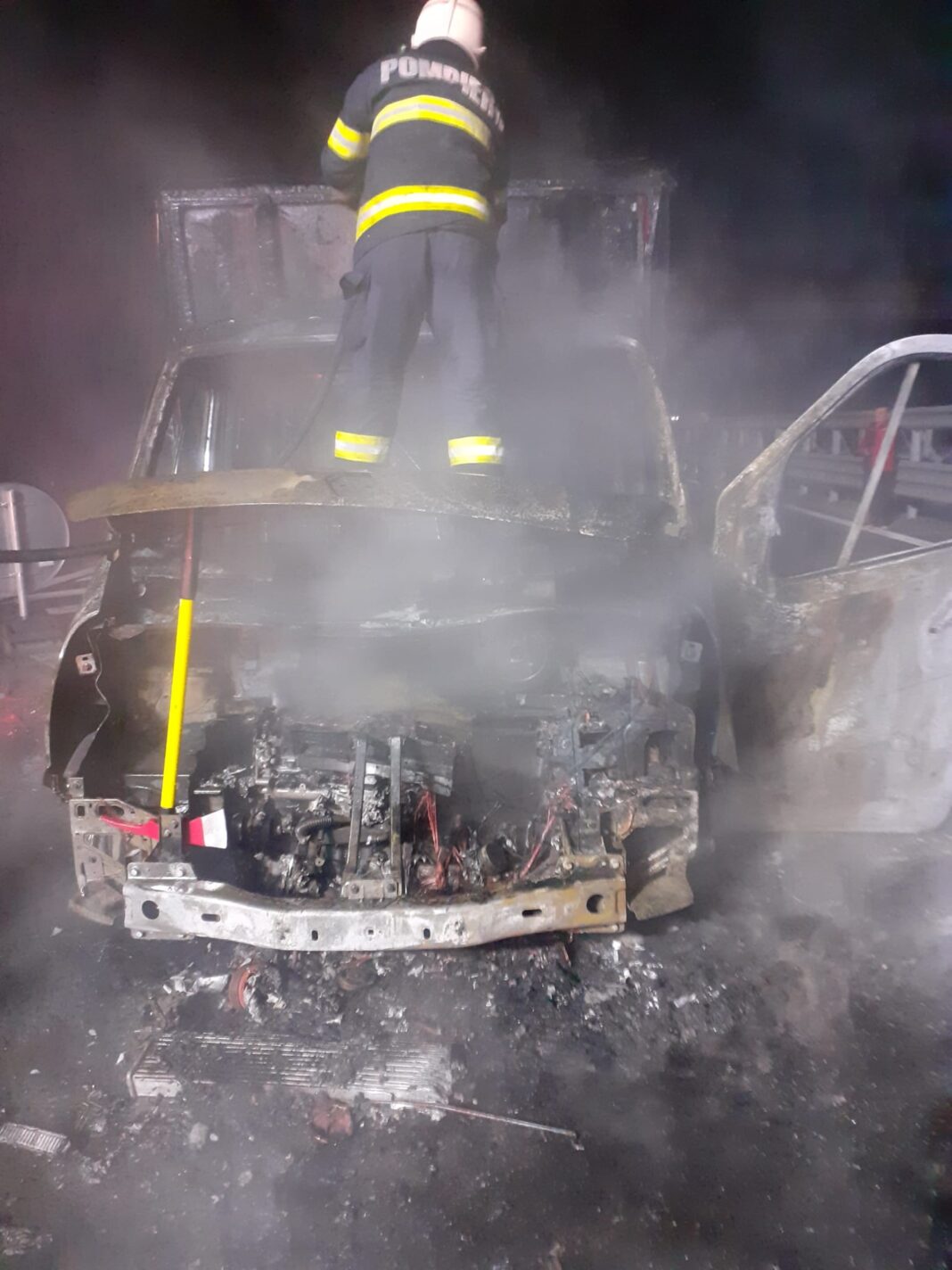 Pompierii de la Detașamentul Turda au intervenit noaptea trecută pentru a stinge un incendiu care a distrus o autoutilitară aflată pe Autostrada A3. Apelul de urgență a venit la ora 01:09, iar la locul solicitării s-a deplasat o autospecială cu apă și spumă.