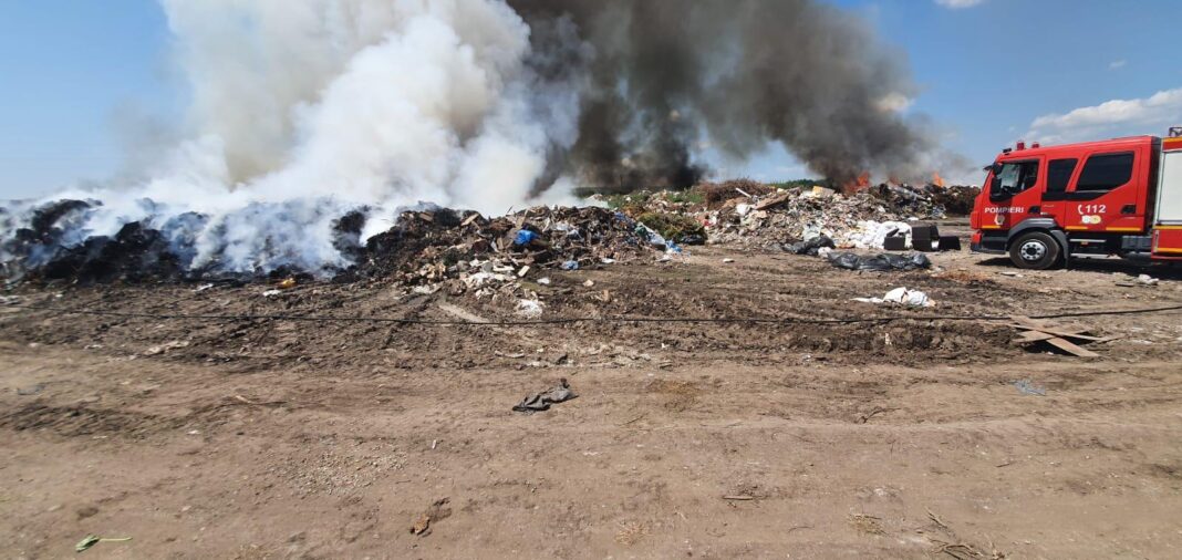 Groapa clandestină de deșeuri a Primăriei Luduș a luat foc, în această după-amiază.